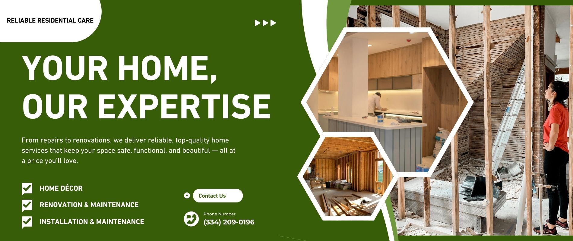 At Reliable Residential Care, we are dedicated to transforming homes into safe, stylish, and functional spaces. With expertise in home décor, interior & exterior design, and bathroom remodeling, we bring creativity and craftsmanship to every project. Our home security and fire safety installation & maintenance services ensure your family’s safety with the latest technology. We specialize in roofing installation & maintenance, providing durable and weather-resistant solutions for long-term protection. As a leader in solar & energy solutions, we help homeowners embrace sustainability with efficient and cost-saving installations. Our home warranty insurance services offer peace of mind, covering essential repairs and maintenance.